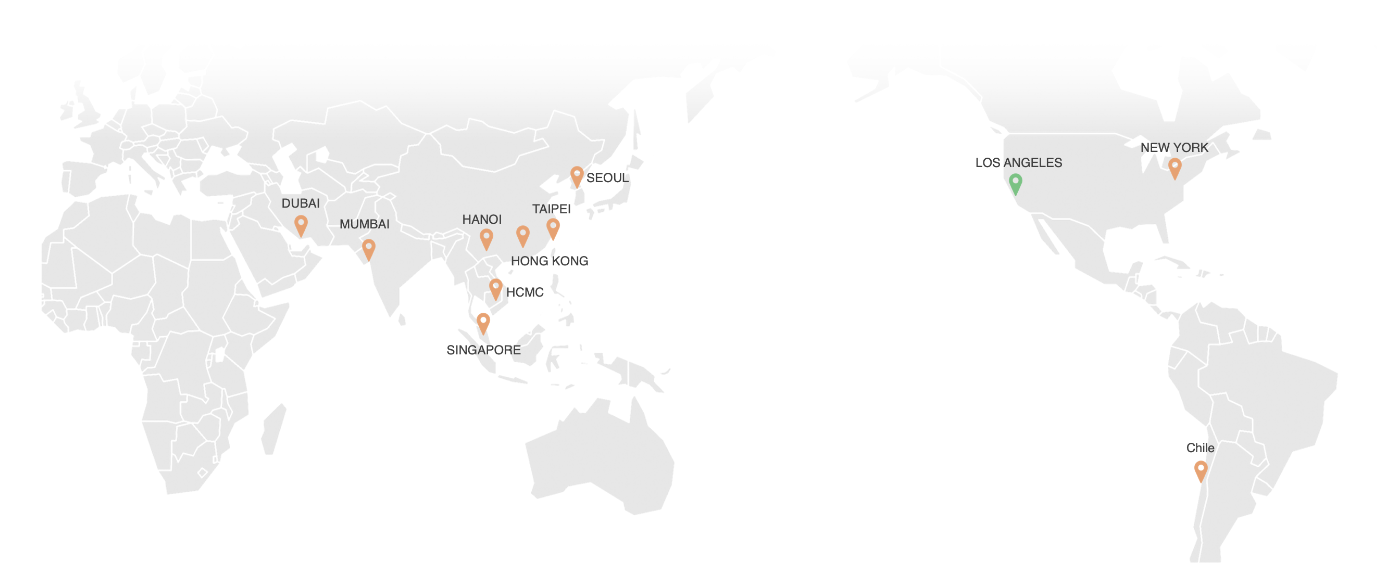 Seoul, Ho Chi Minh City, Hanoi, Hong Kong, Beijing, Shenzhen, Shanghai, Dubai, Santiago, and others.